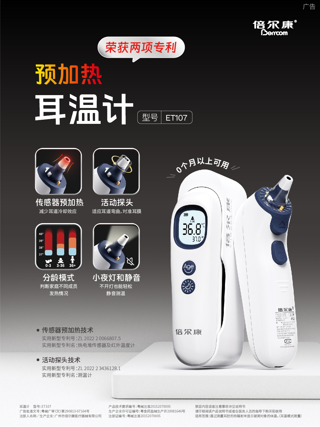 年齡段選擇:可選擇受測對象不同年齡測溫模式